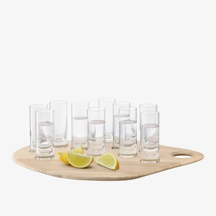 Make a splash when serving up a pre or post dinner shot with the 10 piece shot glass set with ash serving platter. The ash tray has 10 individual holes in it that will prevent your shot glasses moving around as you hand them round to guests. Whether you are enjoying some Tequila or something a bit more creamy, this is a great serving accessory.