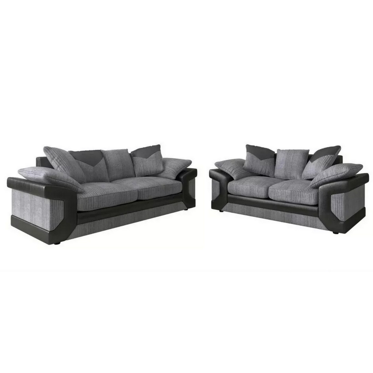 2 and 3 Seater Sofas Set – Dino Fabric Jumbo Cord Grey / Black