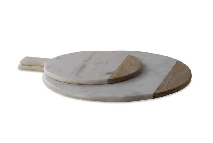 Bwari Marble & Mango Wood Platter, White, Small