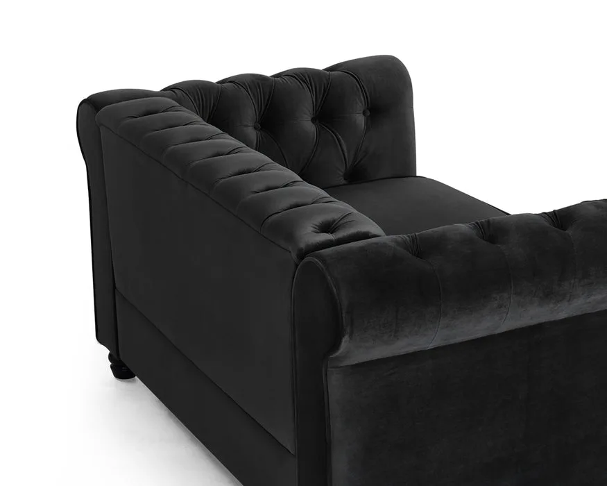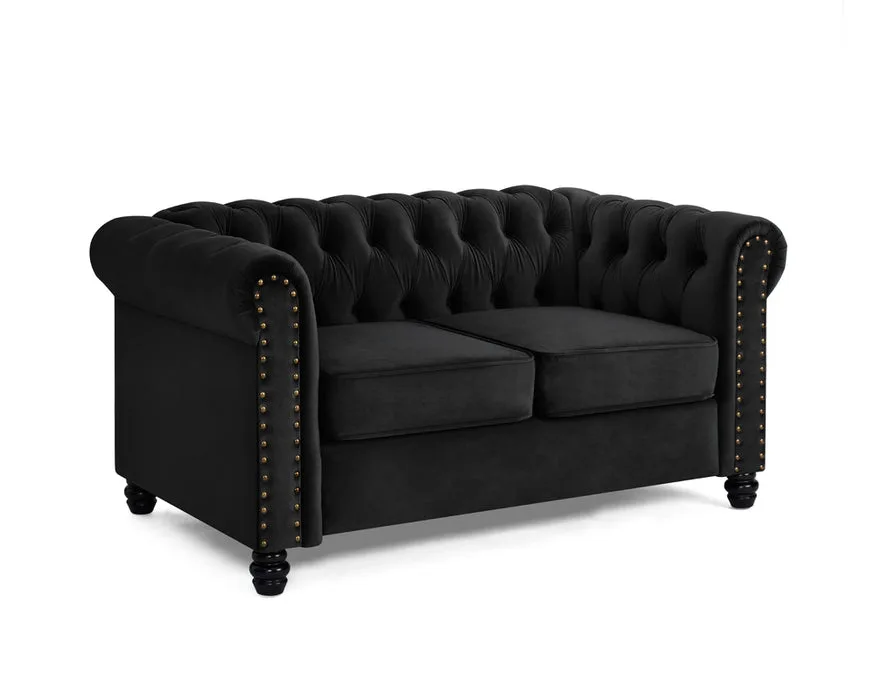 If you’re looking for a sofa that combines elegance, comfort and durability, look no further than the 2 Seater Chesterfield Sofa, Black Velvet. This sofa features a classic Chesterfield design with deep button tufting, rolled arms and wooden legs.