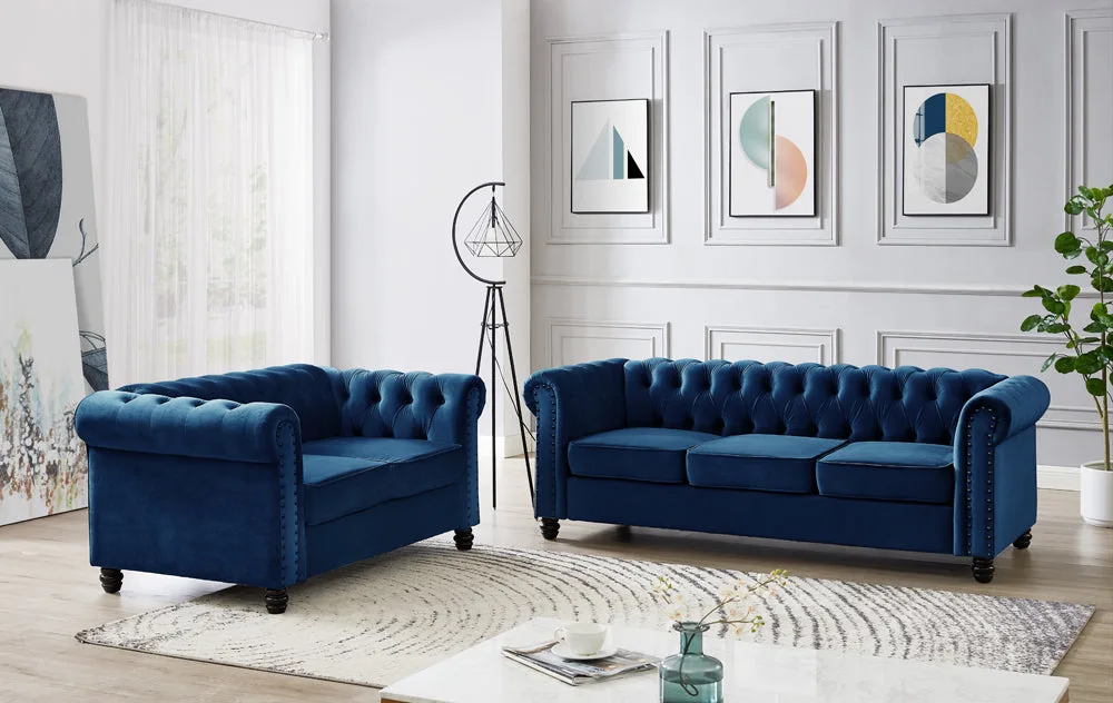 If you’re looking for a sofa that combines elegance, comfort and durability, look no further than the 2 Seater Chesterfield Sofa, Blue Velvet.