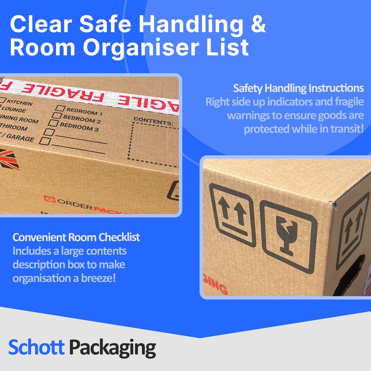 Make moving day smoother with the 20 x Extra-Large Moving House Boxes Kit from Schott Packaging, trusted by thousands across the UK. Each box is crafted from durable corrugated cardboard with built-in carry handles, making them ideal for packing bulky household items, clothing, and kitchenware.