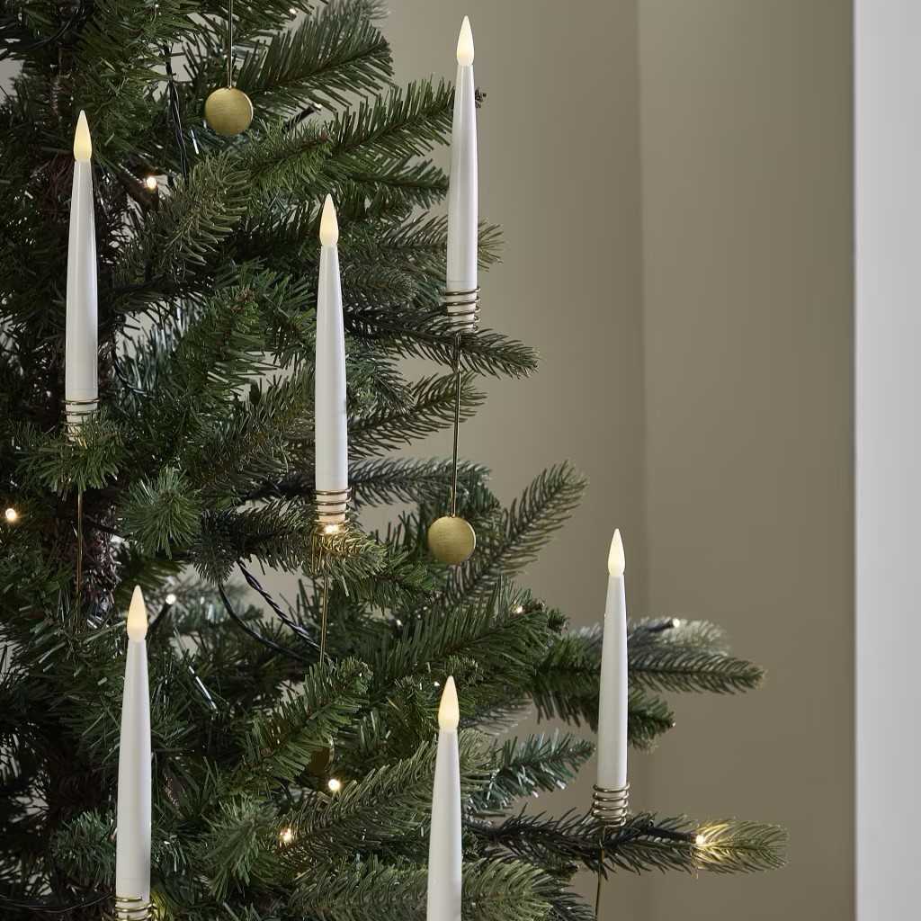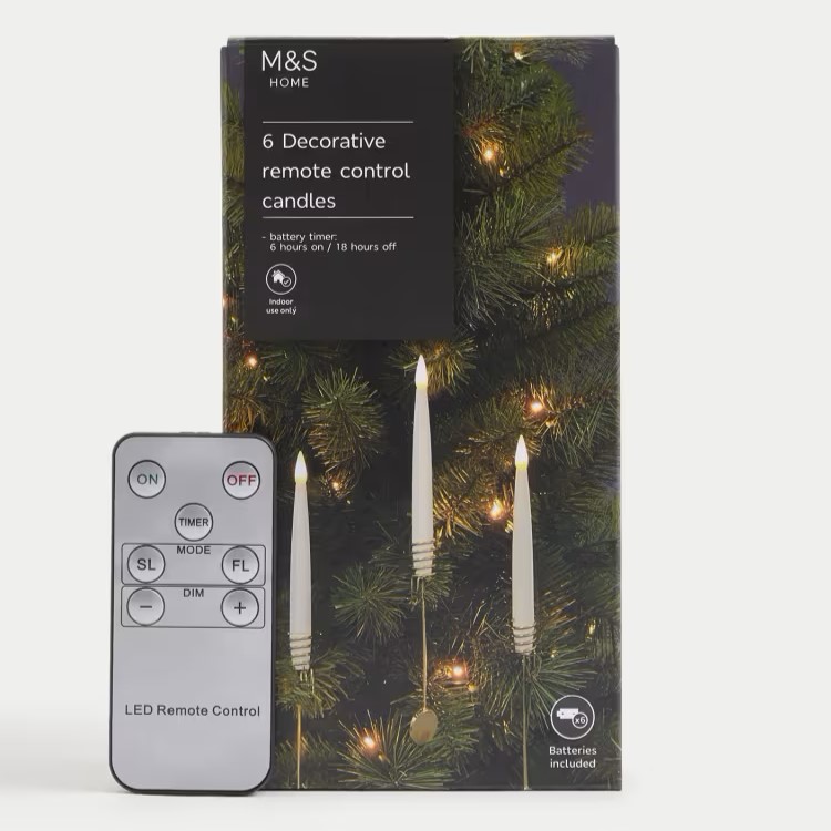 Illuminate your festive season with the 6pk Light Up Candle Decorations by Marks & Spencer. These elegant candles are designed to add a warm, inviting glow to your Christmas tree. Each pack includes six candles and six spiral holders, making them easy to place on your tree branches. Battery-operated and controlled by a remote, these candles offer convenience and a touch of magic to your holiday decor.