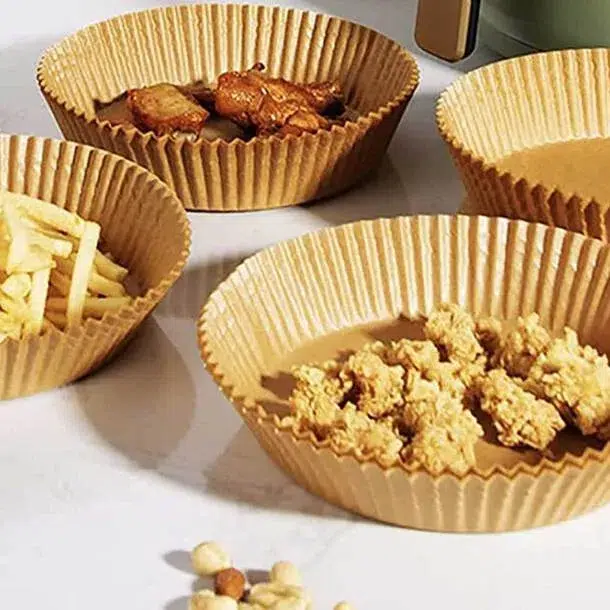 These paper liners are specially designed to fit most air fryers and prevent food from sticking to the basket. They are made of food-grade parchment paper that is non-stick, oil-proof, water-proof and heat-resistant. They also have perforations that allow hot air to circulate evenly and cook your food faster and crispier.