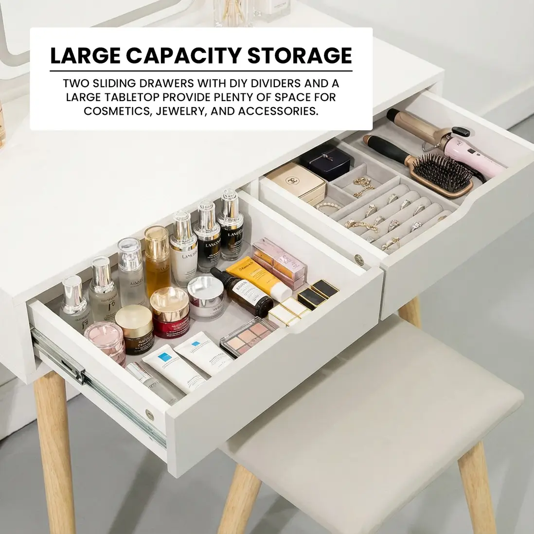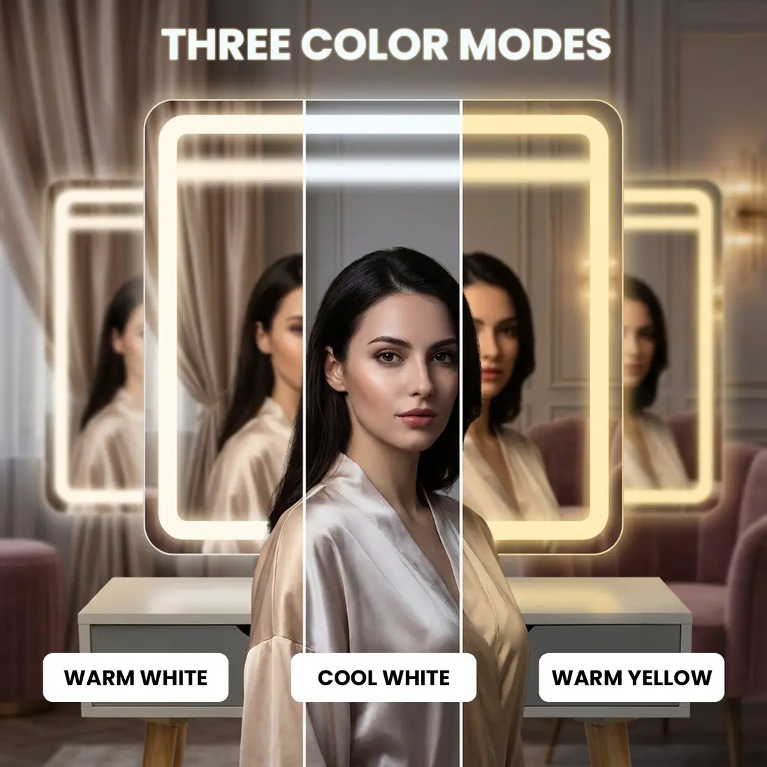 The adjustable LED lighting provides the perfect brightness for makeup application, skincare or getting ready for the day, while the solid wood construction ensures long‑lasting durability. Whether placed in a bedroom, dressing area or guest room, this elegant set brings a touch of glamour and everyday convenience to your home.