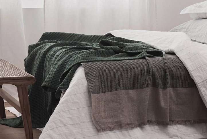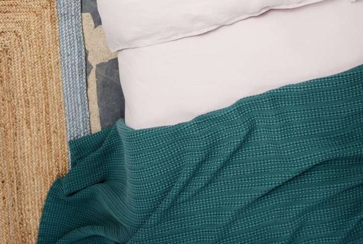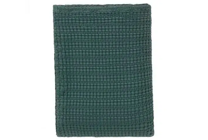 The Anadia Bedspread in Green is a super soft and rich bedspread that has waffle detailing, double folded border and made of 100% stonewashed cotton.