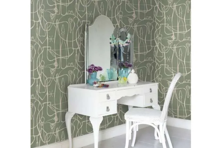 The Atleier Sage wallpaper has a striking Parisian pattern that takes is inspiration from galleries and markets. The hand drawn shapes will help to make any room exciting and unique.