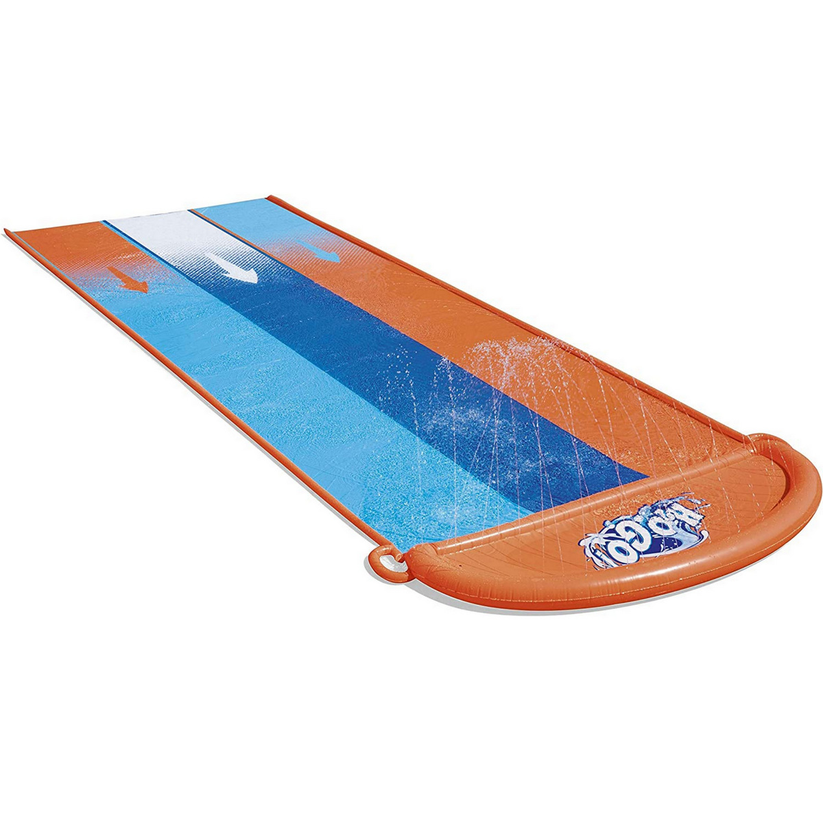 Turn your back garden into and amazing water park that can be enjoyed by kids and adults a like. The Triple Lane Slip and Slide is the perfect waterslide for your garden. The Vinyl slide unwraps and can be connected to a regular garden hose. The slide then get’s wet and thee lanes are ready for the competition to begin.
