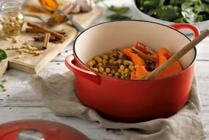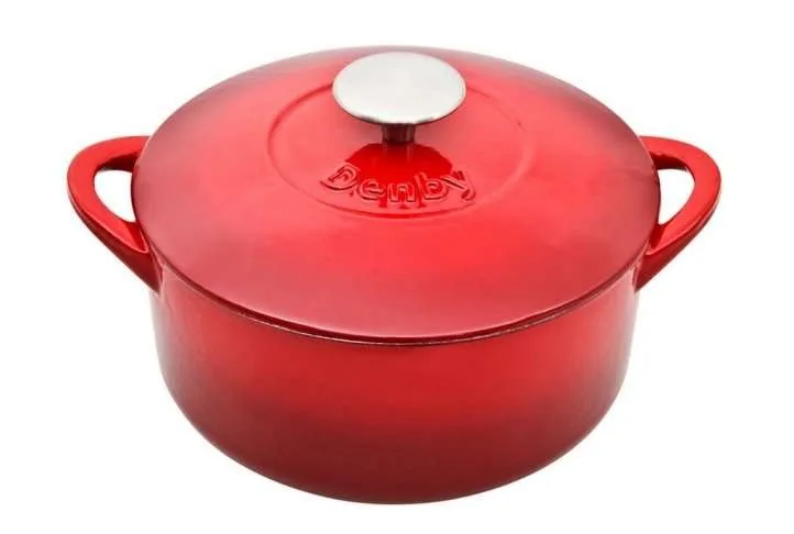 The Pomegranate 26cm Wide Casserole Dish with lid is a versatile cast iron cooking solution for your kitchen. The cast iron dish heats up quicker and stays hotter for longer which is why it will be your new kitchen staple.