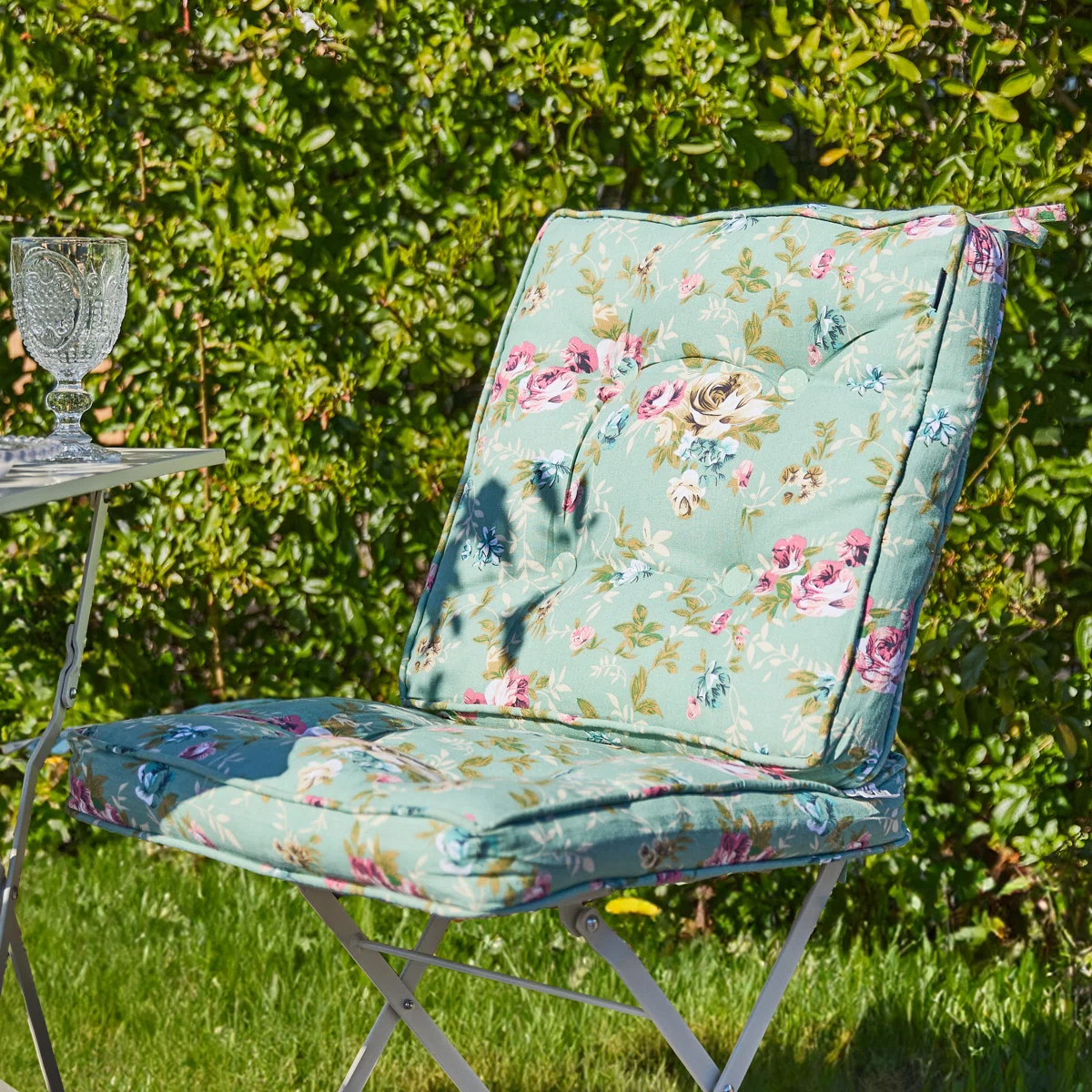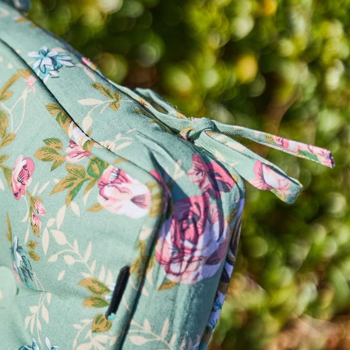 Bring effortless charm and comfort to your garden seating with this Classic Living Set of Two Outdoor Floral Green Seat Cushions. Designed in the UK, each cushion blends cottage‑inspired style with everyday practicality. The vintage floral print, soft pink and blue blooms set against a refreshing mint‑green backdrop. Instantly brightens outdoor dining sets, bistro chairs, and patio spaces.