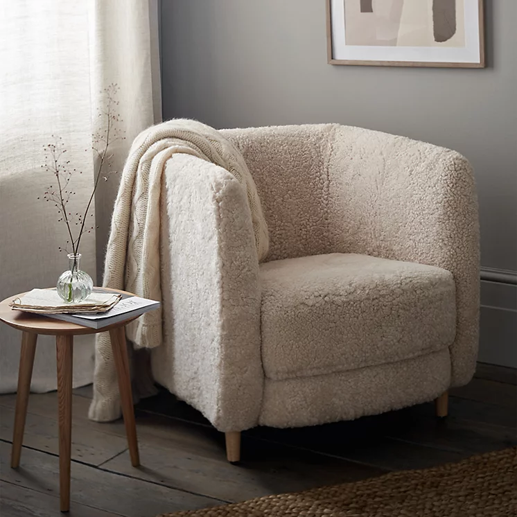 Experience unparalleled comfort with The White Company’s Cosy Sheepskin Chair. This luxurious chair is crafted from the finest New Zealand curly sheepskin, known for its durability and incredibly soft feel. The elegant pearl hue and the chair’s inviting, plush design make it a perfect addition to any living room or bedroom. Whether you’re curling up with a good book or simply relaxing, this chair will cocoon you in comfort and style.