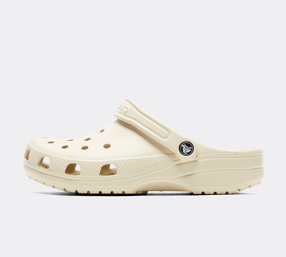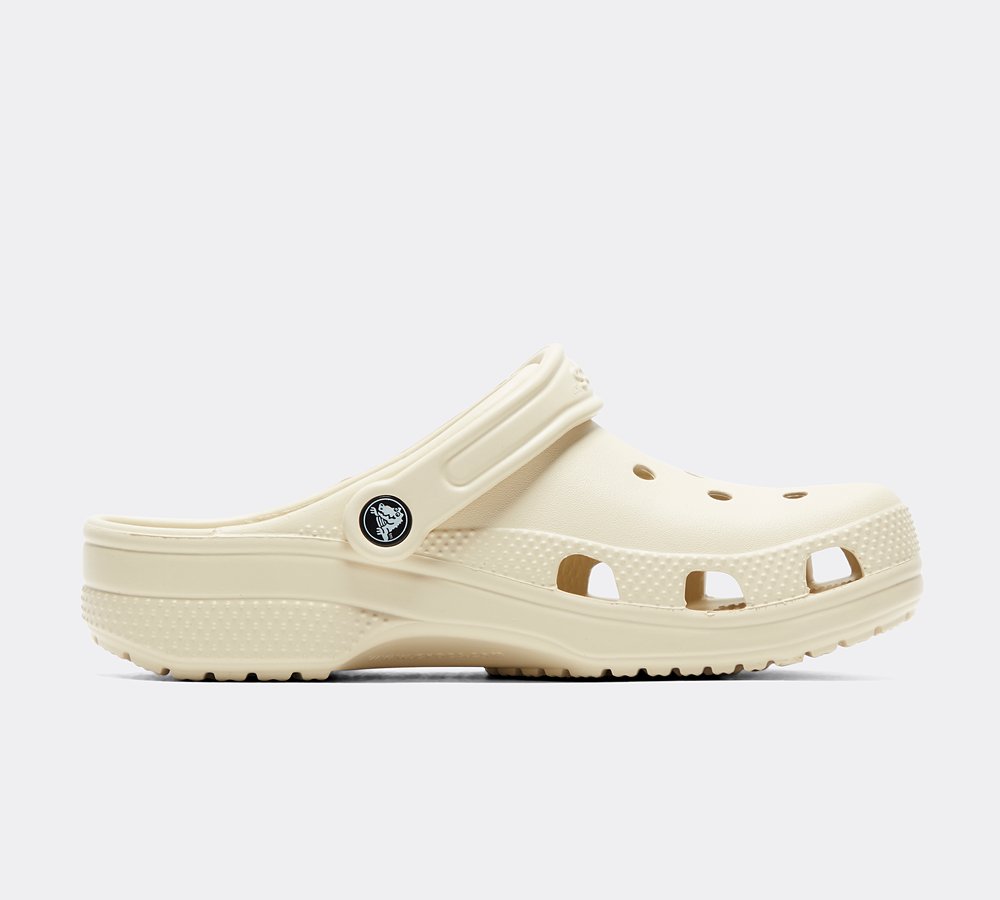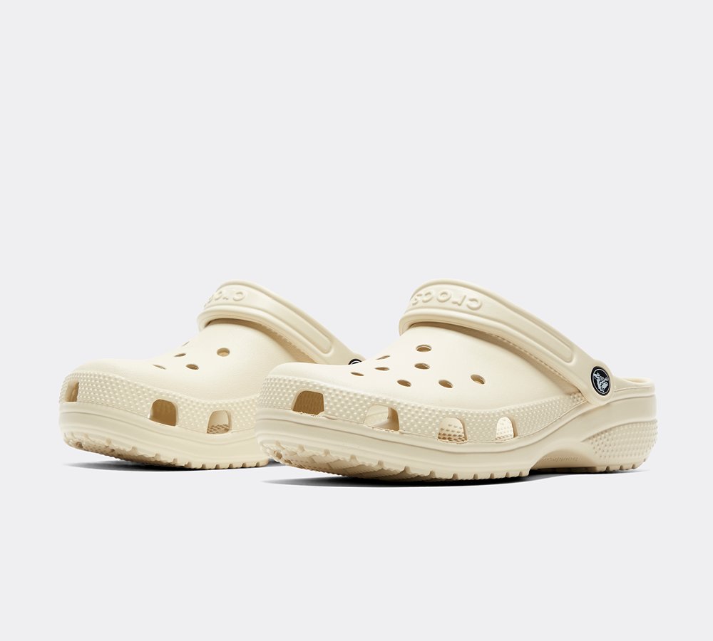 The popular Crocs Junior Classic Clogs are back in Beige. The amazingly comfortable footwear designed for kids. These Croc clogs are designed to be airy, well ventilated and also help to drain away any excess water and dirt and sand. Crafted from fully moulded Croslite™ material that moulds to your foot for superb arch support and that classic Crocs trademark comfort.