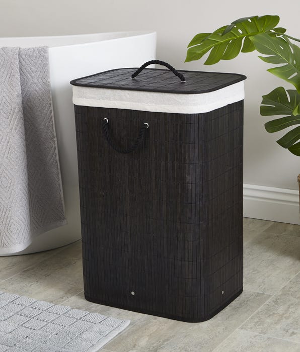 Elevate your home with the Damart Bamboo Laundry Basket, a blend of sustainability and style. This charcoal-coloured basket features a washable cotton blend liner and convenient rope handles for easy mobility. Its sleek design ensures that your laundry storage is not just practical, but also adds a touch of modern elegance to any room.