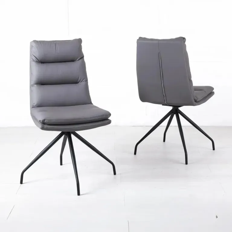 Diego Grey Leather Swivel Dining Chair with Black Legs