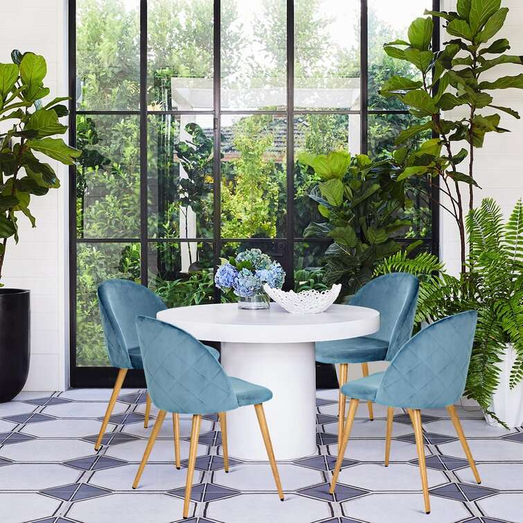 Sit down and relax or work at your dining table with Set of 2 Dungorbery Dining Chairs in Blue. The chairs have a velvet finish and a wooden frame that compliments the fabric body beautifully. The dining chairs are suitable for a modern or contemporary home and can also be used as occasional chairs when more seating is required.
