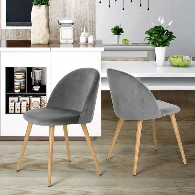 Sit down and relax or work at your dining table with Set of 2 Dungorbery Dining Chairs in Grey. The chairs have a velvet finish and a wooden frame