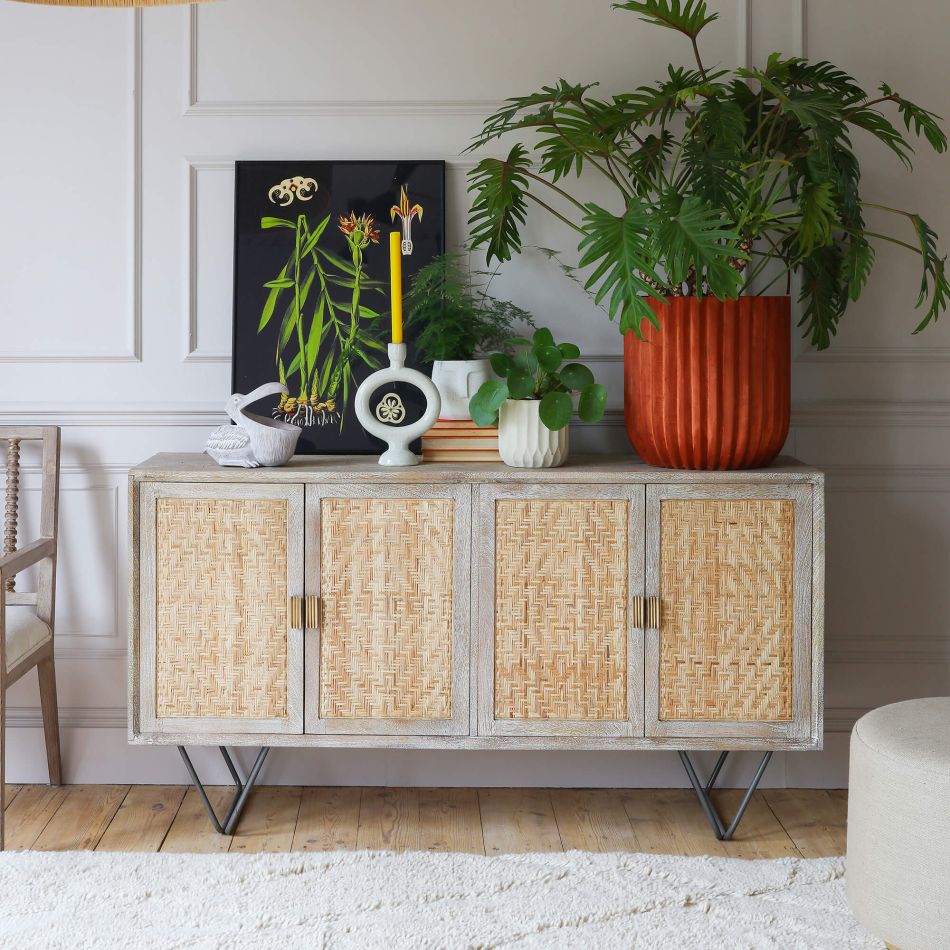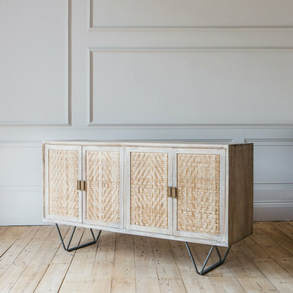 The Etienne Four-Door Sideboard is a masterpiece of design, blending the timeless elegance of Scandi style with the robustness of handcrafted mango wood.