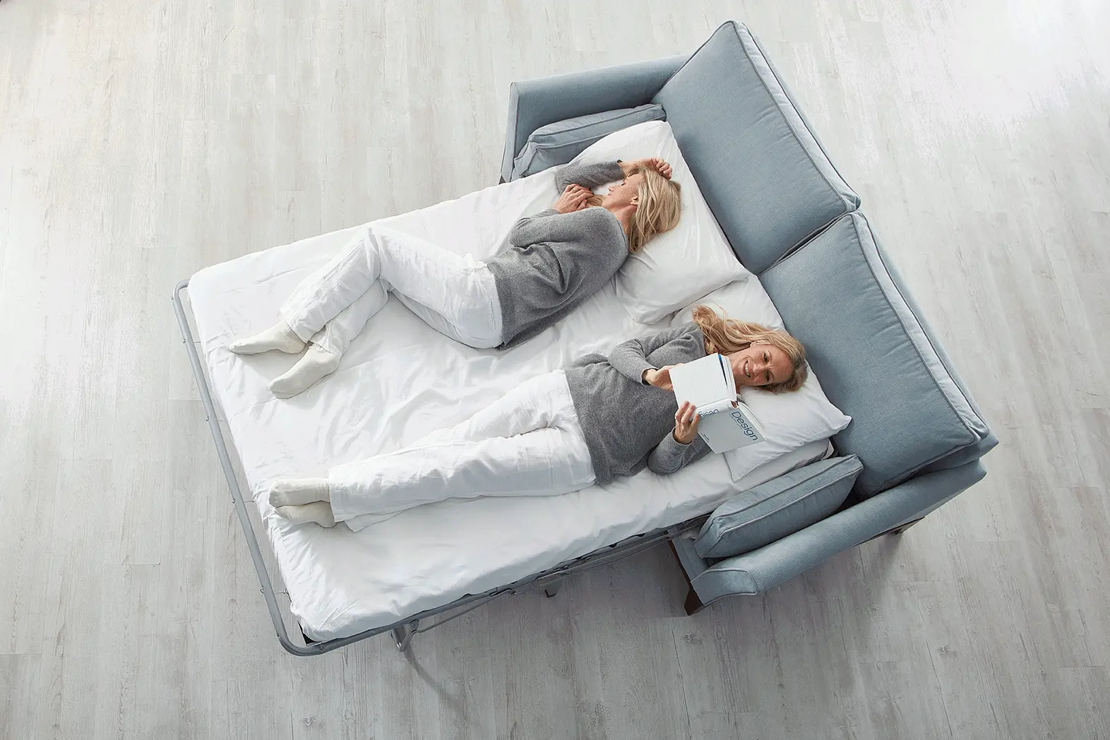 - Features: Webbed back with sumptuous pocket layered fibre back cushions, thick and comfy 12cm pocket sprung mattress as standard on all sofa beds, optional memory foam upgrade
