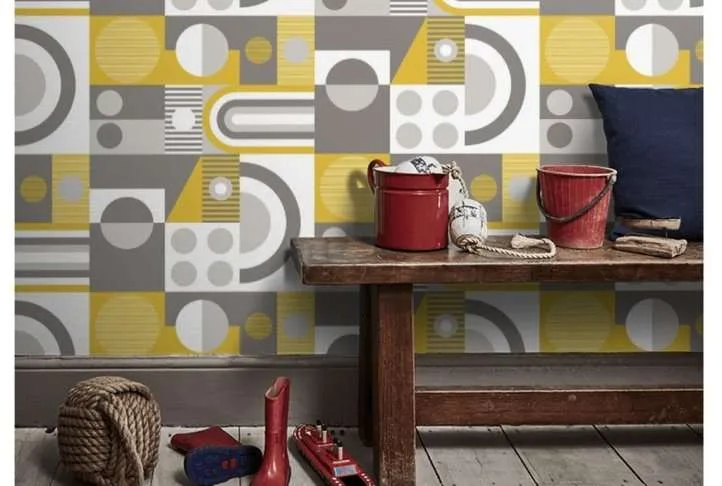 The FAB! Mustard wallpaper is a striking pop magazine styled wall covering that showcases bold geometric designs. Bring a real modern touch to any room with this unique wallpaper offering.