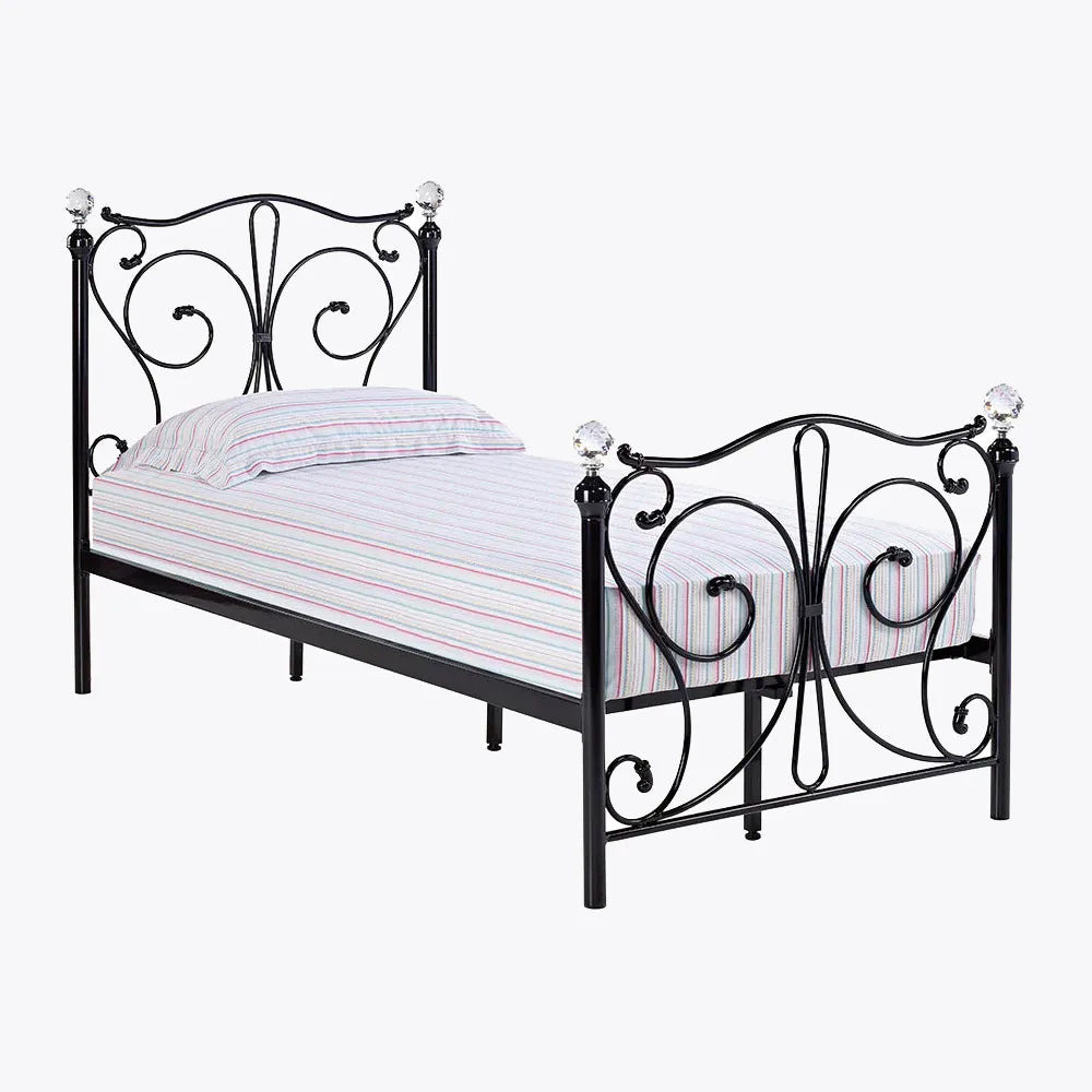 Inspired by the retrospective trend in metal beds for more traditional designs, the Florence Single Bed is beautifully sculpted with fine detail. To compliment the spectacular metal work, it is completed in a striking black metallic finish and adorned with crystal finials.