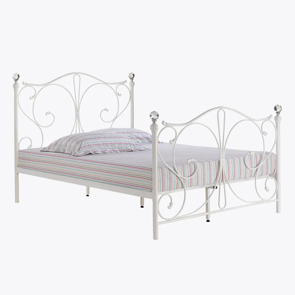 Inspired by the retrospective trend in metal beds for more traditional designs, the Florence King Size Bed is beautifully sculpted with fine detail. To compliment the spectacular metal work, it is completed in a striking white metallic finish and adorned with crystal finials.