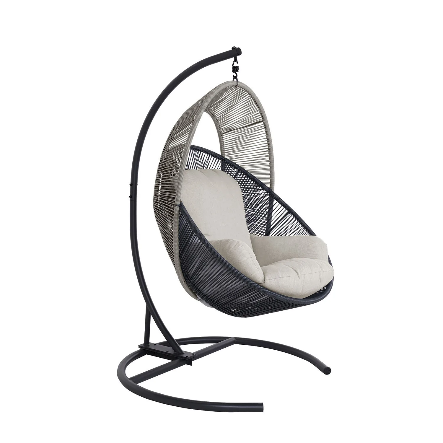 The chair is designed with a curved base that allows for gentle swinging motion, while the comfortable seat is made from a durable rattan material that is both sturdy and weather-resistant. The hanging chair comes with a soft cushion that provides additional comfort and support, and it is available in a variety of stylish colours that can match any outdoor décor.