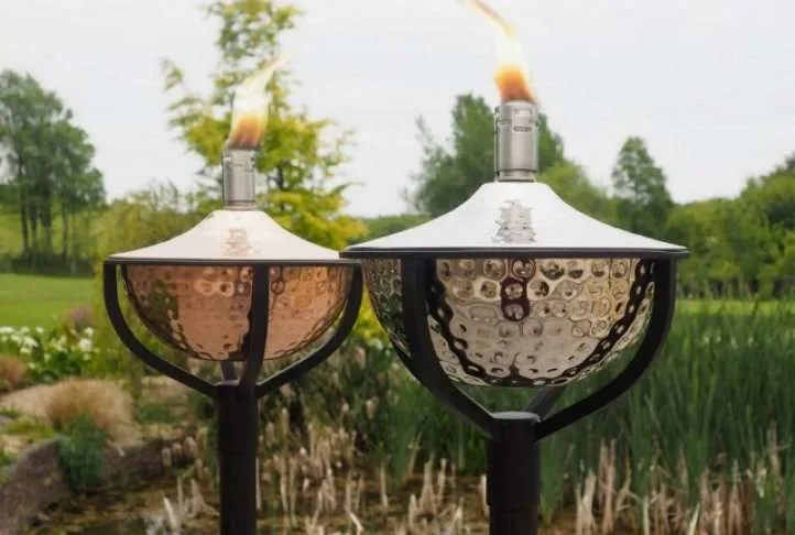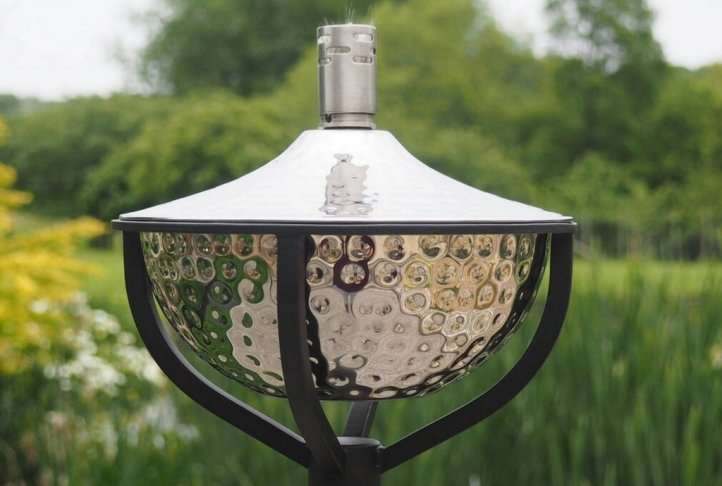 The torches have been hand hammered from stainless steel and finished in a bright shine or copper effect.