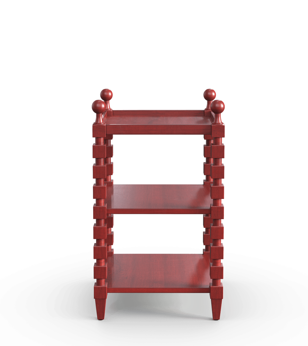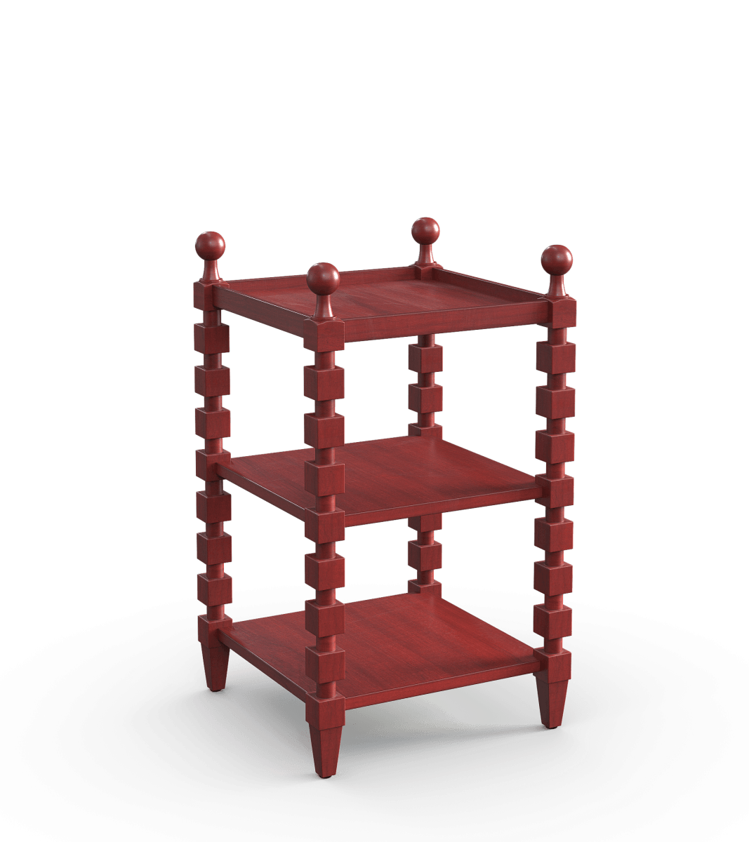 Introducing the Huxley Side Table, a vibrant addition to any room that marries traditional craftsmanship with contemporary design. This piece is a modern twist on classic bobbin furniture, featuring circular finials and bold block legs that create a striking silhouette.