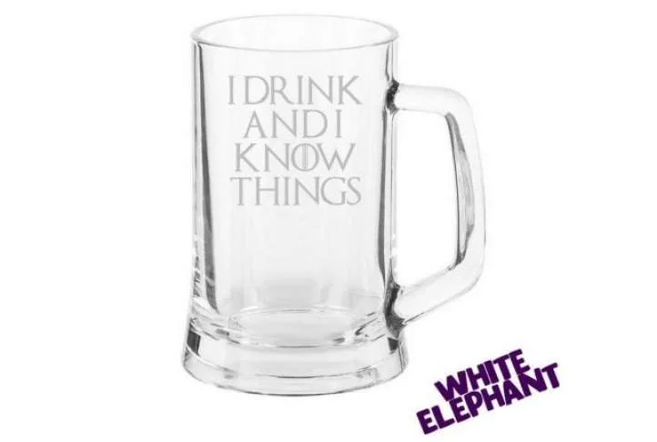 Made from solid glass, the I Drink And Know Things Tankard is a quote from GOT and will serve you well as you drink and binge you favourite series.