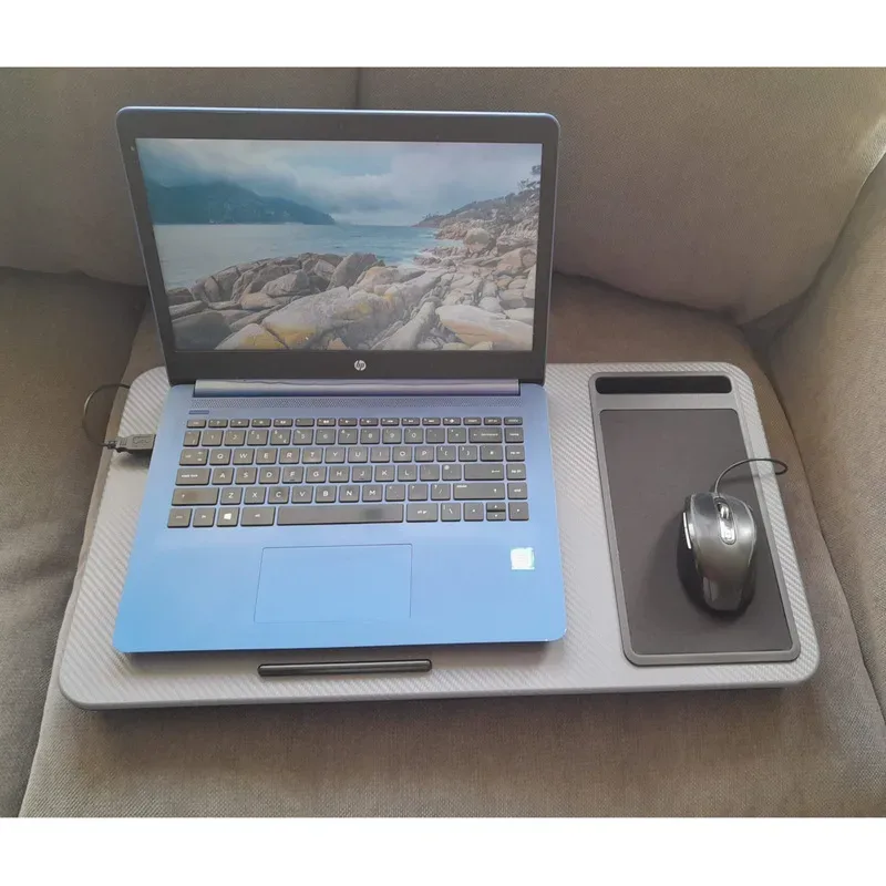 I have been using this for sometime and can say that it is very useful and well constructed. The cushions on the underneath are soft and the mousepad is just the right size. The bar at the front of the tray stops the laptop from slipping off.