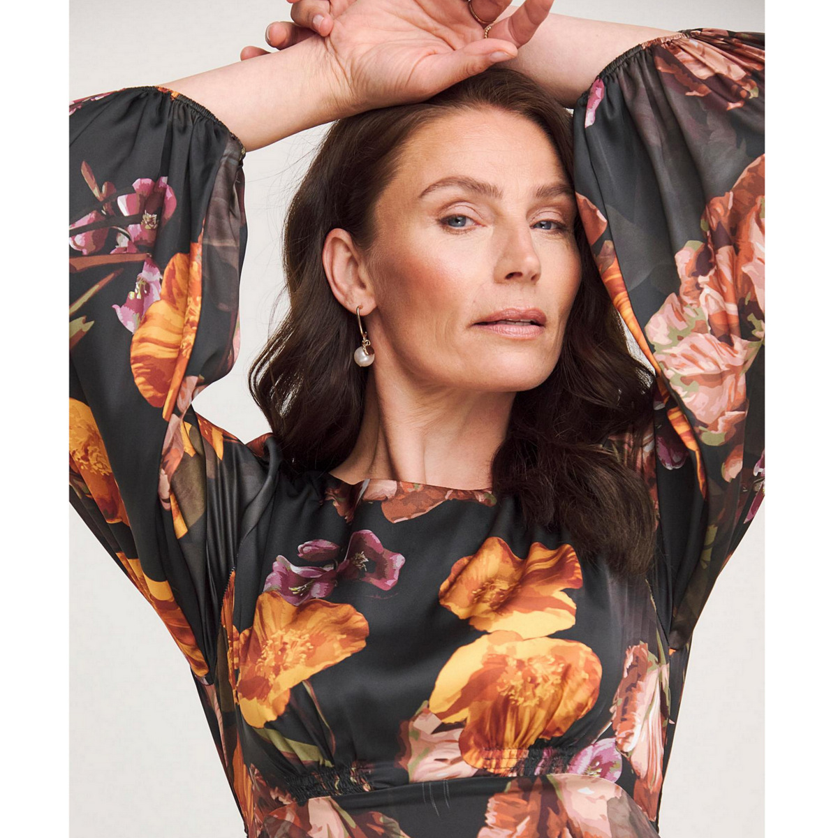 Step into elegance with the Joanna Hope Shirred Detail Satin Maxi Dress. This exquisite piece is a symphony of design, featuring delicate frills on the sleeves and pleating across the shoulders for a touch of grace.