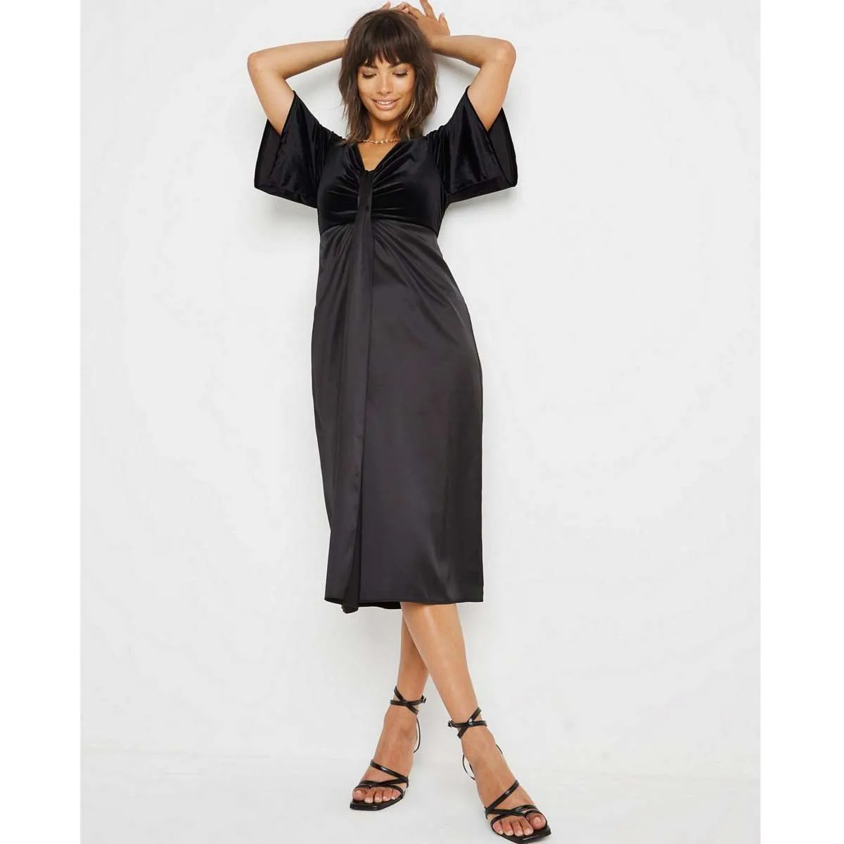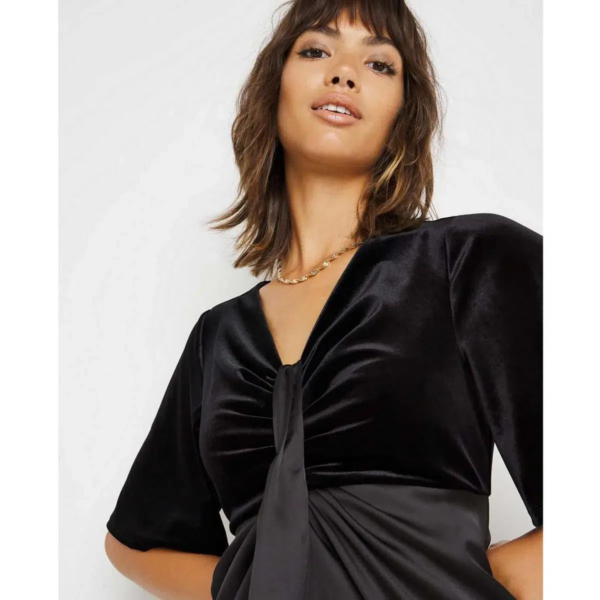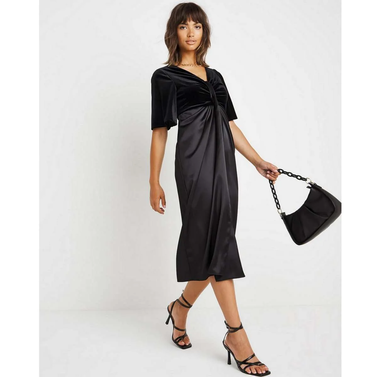 Update your style this season with the ultra warm and stylish Joanna Hope Velour Satin Mix Dress. The perfect wardrobe addition for leisure and semi-formal occasions. The sleek gorgeous mix dress features a velour bodice and satin skirt, with twist detailing. Both the bodice and skirt come fully lined for added comfort and fit. The dress fastens with a centre back concealed zip.