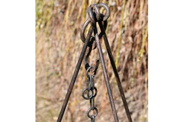 The Wrought Iron 95cm Cooking Tripod is an essential accessory for your Kadai cooking experience. The tripod will enable you to hang cooking bowls, skillets and ironware over your Fire Bowl.