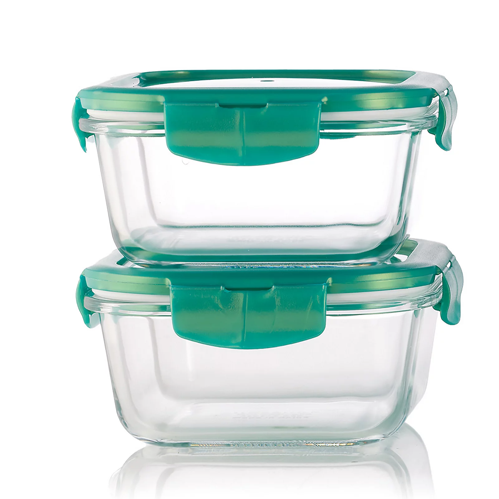 - 2 x 500ml glass containers with lids (14cm x 14cm x 6.7cm)