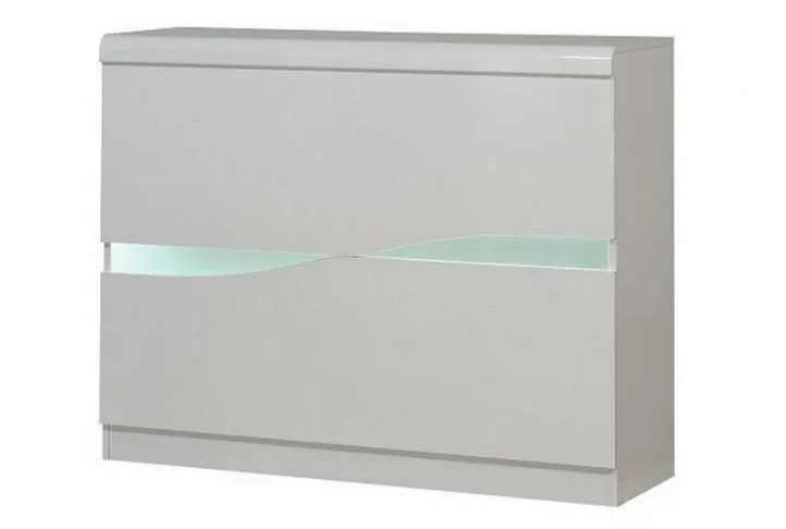 A Merida is a modern home bar unit that features LEDs and white lacquered finish.