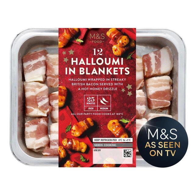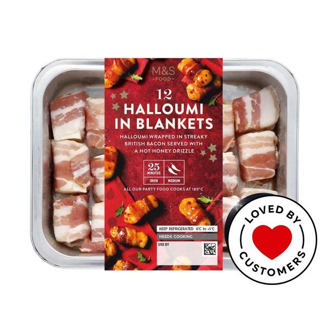 Indulge in the delightful combination of flavours with the M&S Halloumi in Blankets. This unique twist on a classic favourite features 12 halloumi cheese bites, made from a blend of cow’s milk, goat’s milk, and sheep’s milk, wrapped in oak and chestnut smoked streaky bacon. Accompanied by a sachet of hot honey sauce, these bites offer a perfect balance of salty and sweet, making them an irresistible addition to any party spread. Easy to prepare, they cook to golden perfection in just 25 minutes, ensuring a delicious and hassle-free treat for your guests.