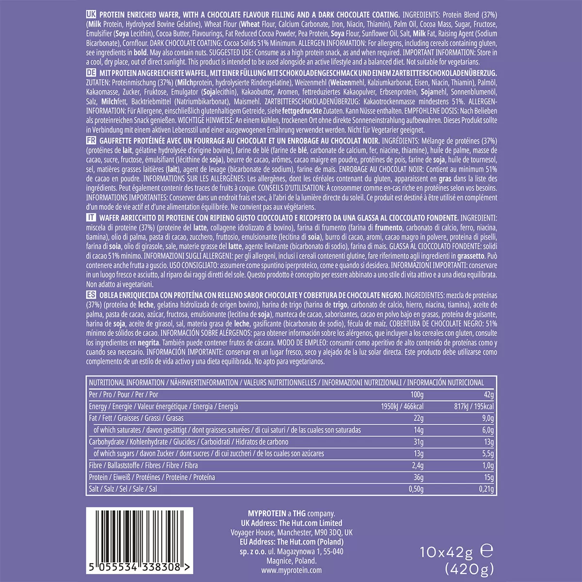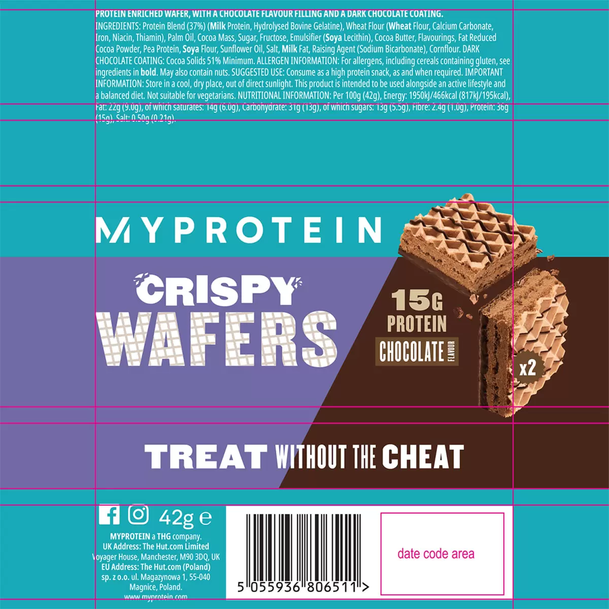 Each 42g bar is packed with a high-quality protein blend from whey and milk, designed to support muscle recovery and growth. The delightful crispy wafer texture, combined with a decadent chocolate filling, offers a delicious treat without compromising your dietary goals.