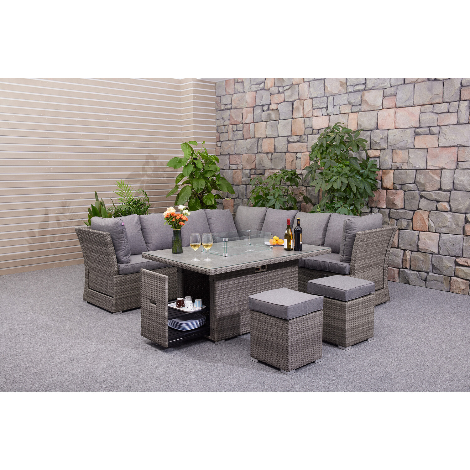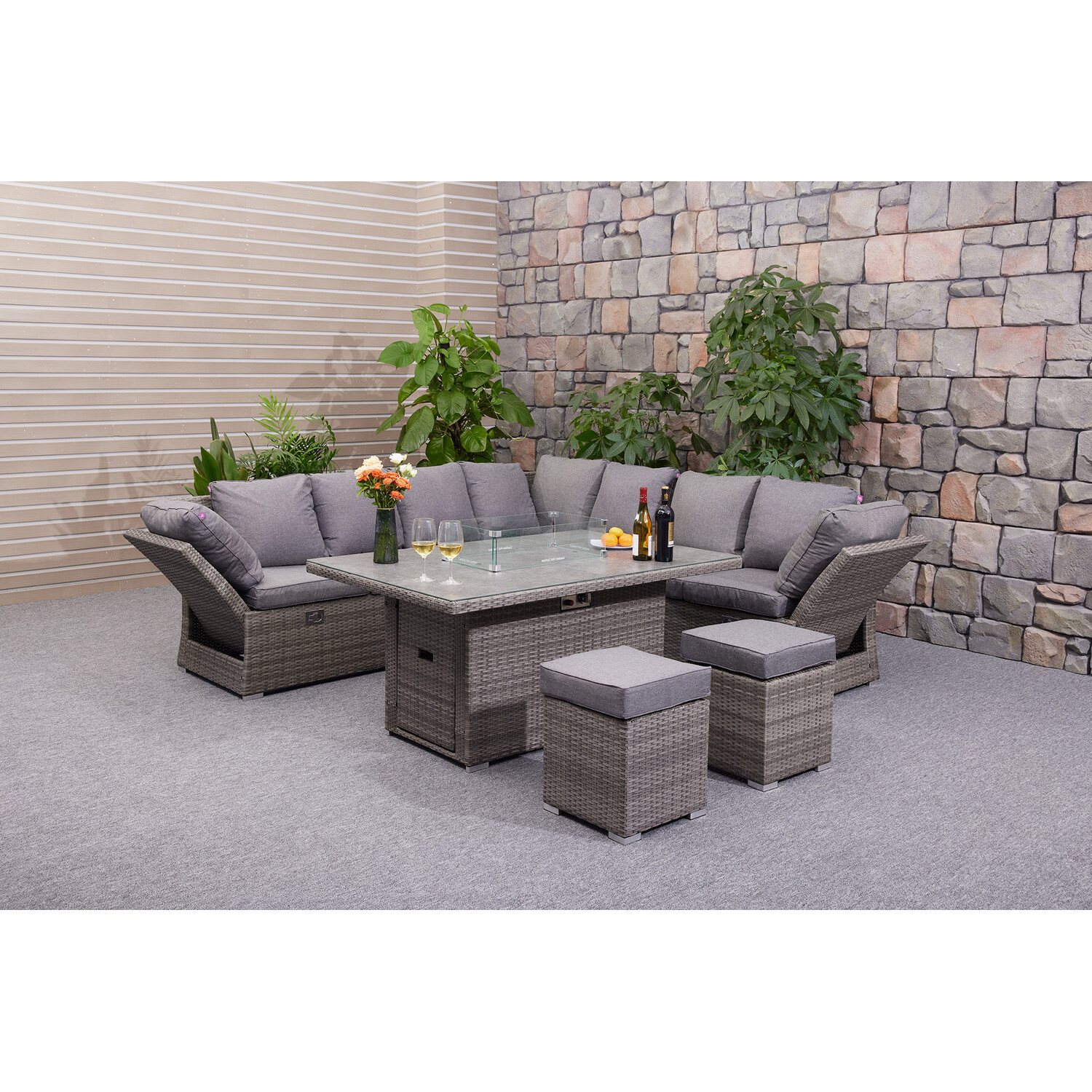 Transform your garden into a stylish and inviting retreat with the New Hampshire 9 Seater Fire Pit Garden Set. Designed for ultimate relaxation, this modern lounge set combines comfort, durability, and elegance. Featuring a built-in fire pit, plush cushions, and a weather-resistant aluminium frame, it’s perfect for long summer evenings with family and friends. The ceramic glass tabletop and safety glass enclosure ensure a secure and sophisticated outdoor experience. Whether hosting guests or unwinding under the stars, this set offers warmth, style, and versatility.