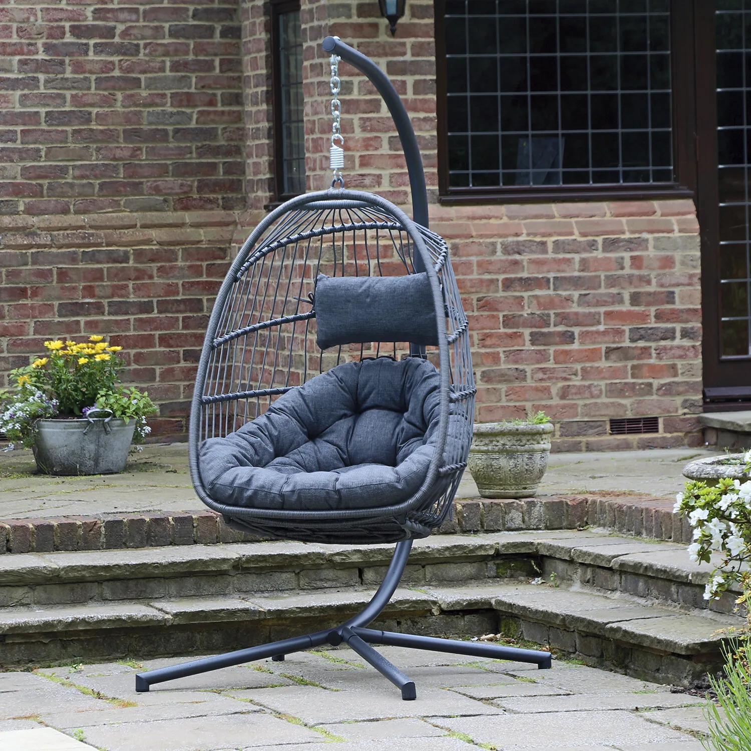 The chair can be easily folded and stored when not in use, saving you space and hassle. The chair also comes with a matching cushion and a hanging kit, so you can set it up in minutes and enjoy the gentle sway of the breeze. Whether you want to relax with a book, take a nap, or chat with a friend, the New Hampshire Foldable Hanging Chair is the perfect choice for your garden, patio, or balcony.