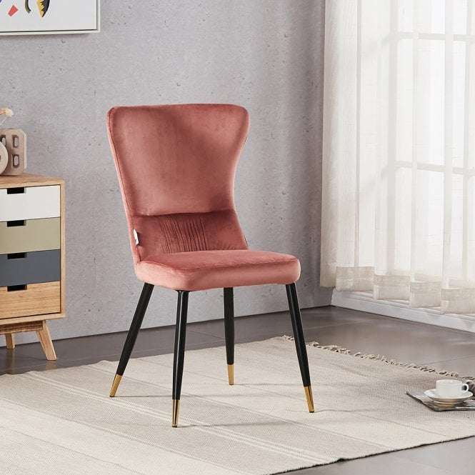 The chair is modern and upholstered in a classic rich velvet that will snug your guests all evening long.