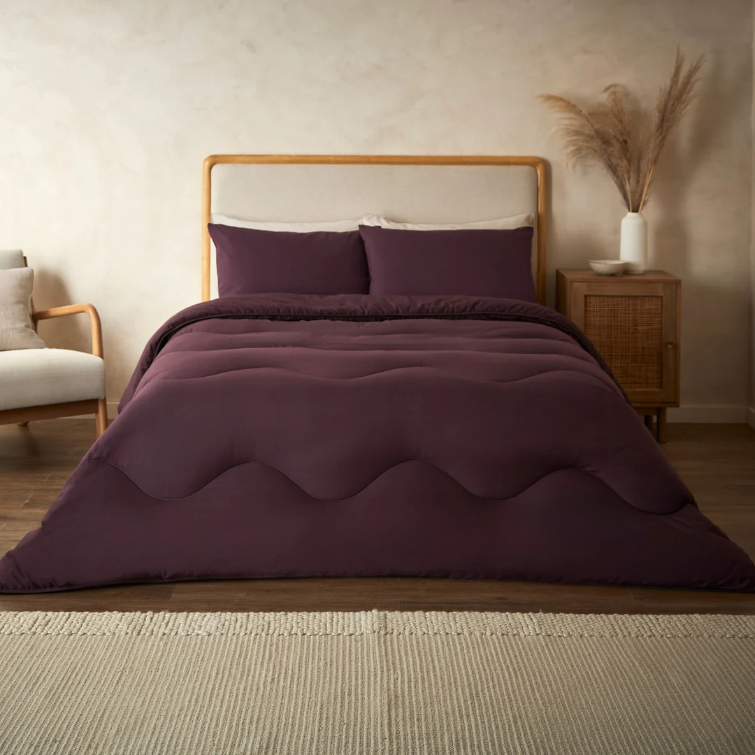 Elevate your bedroom with the Night Lark® Mulberry Bliss Coverless Duvet Set, a limited edition design that blends effortless style with everyday practicality. Featuring a rich block colour and matching pillowcases, this duvet eliminates the need for covers thanks to its built-in peachskin microfibre shell.
