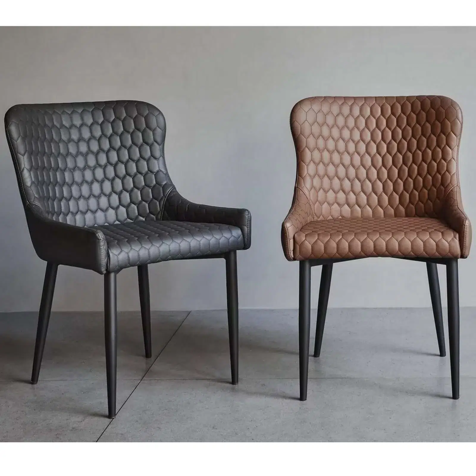 - Curved, quilted faux leather dining chair