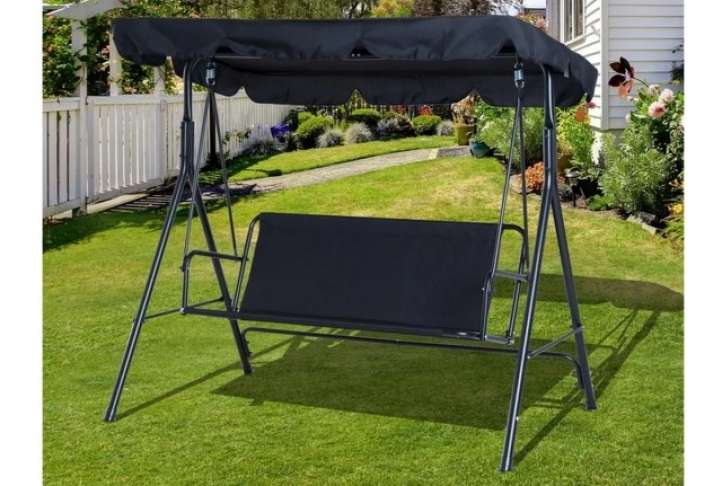 The inexpensive Outsunny Swing Chair in Black is made from a high quality steel frame with seating made from a waterproof polyester fabric.
