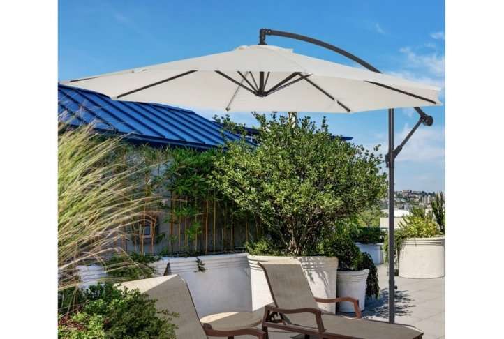 The Outsunny 3m Side Parasol in Cream is a large unobtrusive shade solution for your patio. It is water resistant and includes top vents for those light gusts. The strong steel pole and arms make sure that this large parasol remains robust and intact even in high winds.