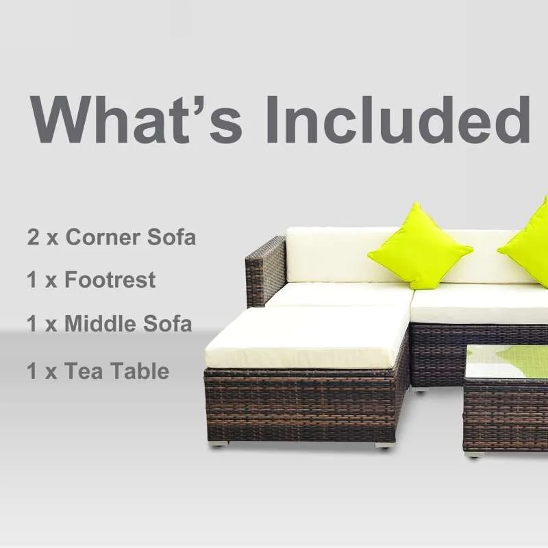 The 5-Piece Garden Sofa Set in Brown can seat 4 people with ease, is versatile and comes with an accompanying coffee table for drinks and accessories.