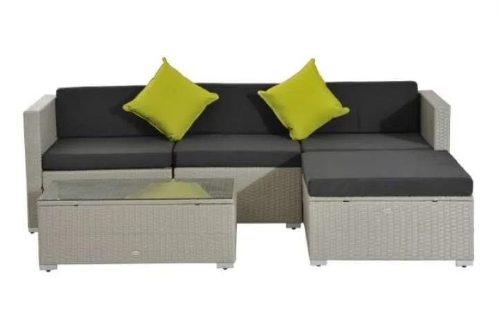 The 5-Piece Garden Sofa Set in Grey can seat 4 people with ease, is versatile and comes with an accompanying coffee table for drinks and accessories.