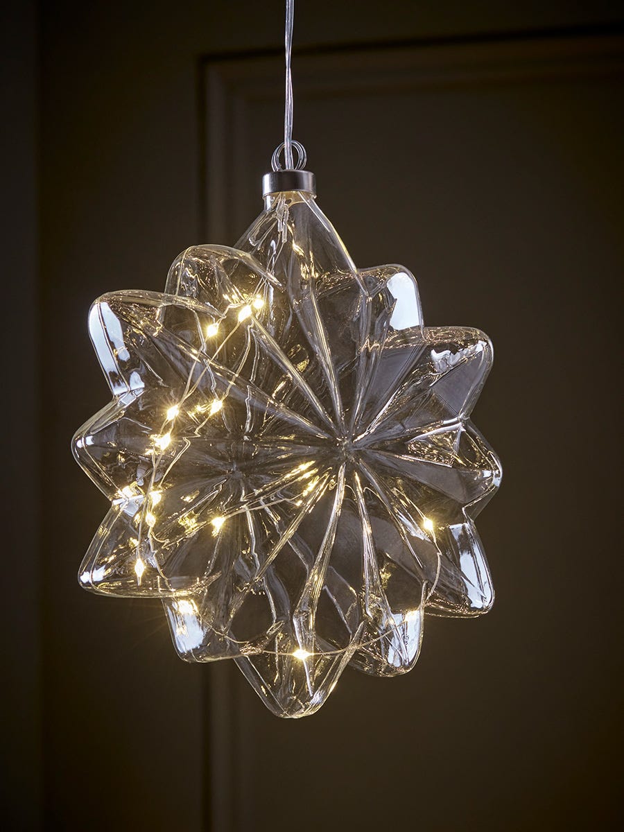 Add a magical touch to your holiday decor with our Oversized Light Up Glass Snowflake, casting a warm, inviting glow.