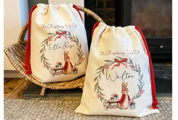 The Personalised Peter Rabbit Santa Sack are made from traditional linen and can be personalised with a name of your choice.