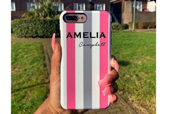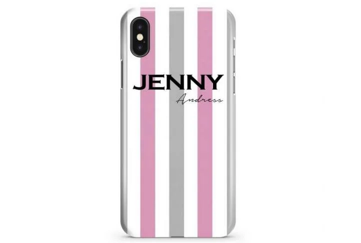 The Personalised Pink & Grey Stripe Name iPhone XS Max Case allows you to protect you mobile whilst bringing it some extra style.