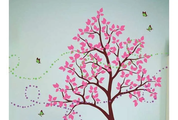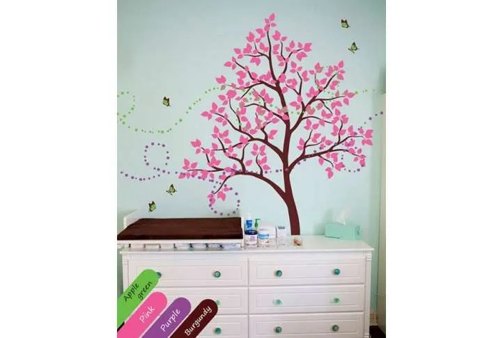 The stunningly large wall print comprises of a tree with pink leaves and lots of butterflies. You also have the option to customise the print with your own colour requests.